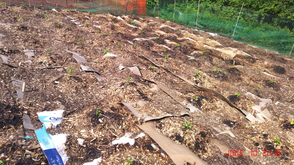 You can see how the cardboard has settled and the chips are keeping the soil in place.