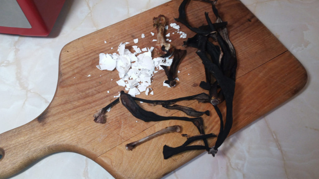 This year, our Mineral Meal Mix started out heavy on the banana peels, eggshells, and Epsom salts. That means there was a good amount of potassium and magnesium in the compost tea we made with it. to spray the seedlings with.