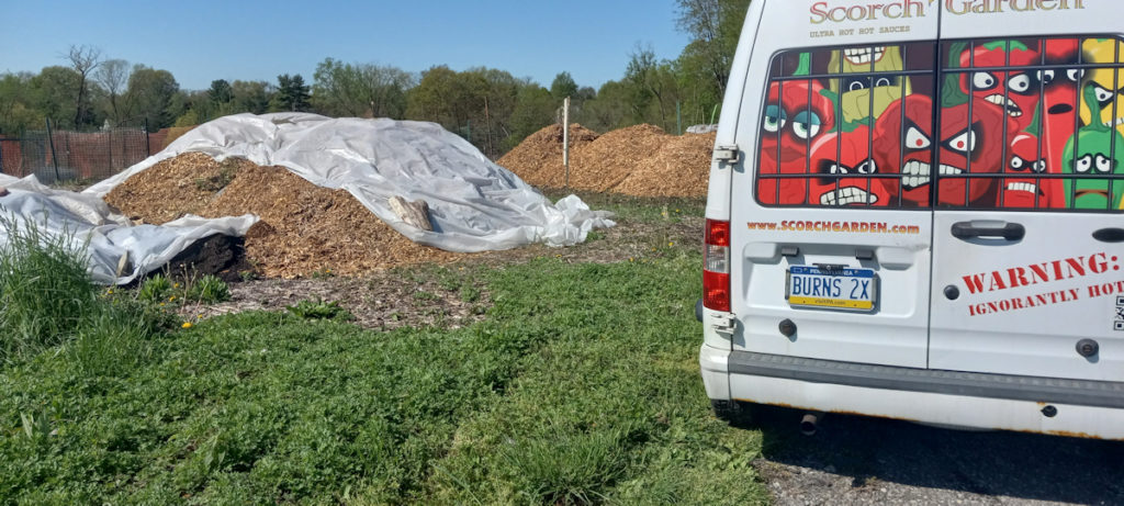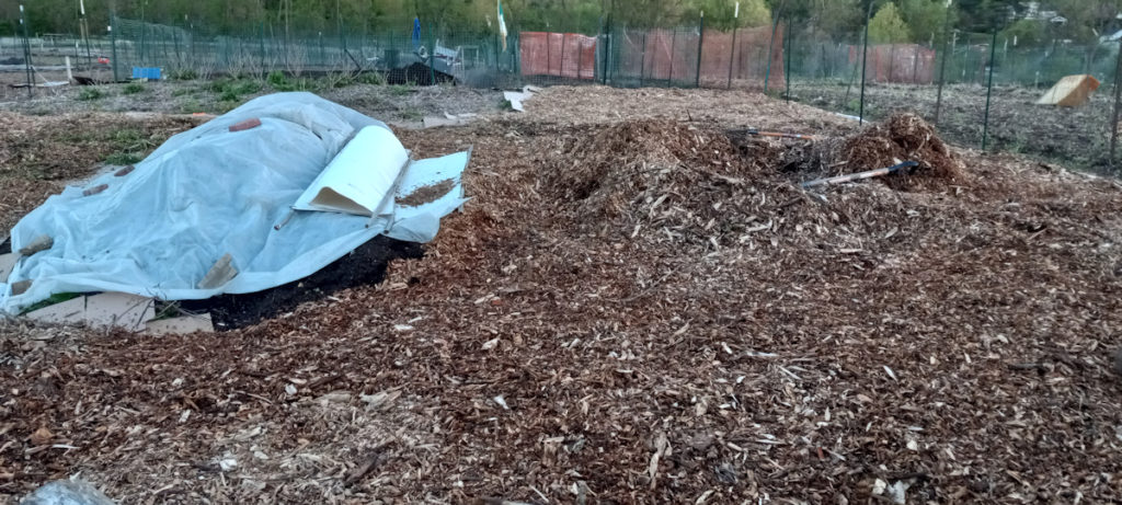 We had covered the chips with some plastic sheeting as best we could. It rained very heavily for about 4 days, so it really didn’t matter, but it’s the thought that counts.